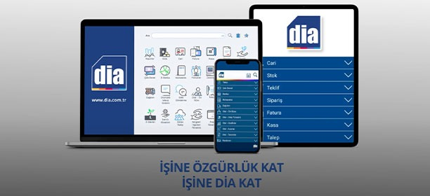 - E-ticaret yönetimi: DİA e-ticaret ile işletmelerin internet üzerindeki satış yapabilme olanaklarını destekler. Ayrıca bayiler ile iletişimin kolay ve pratik bir şekilde ilerlemesine de yardımcı olur.